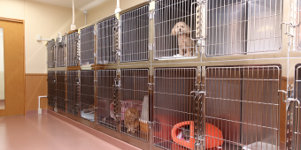 当院のペットホテルは、ホテル専用ルーム、ネコ専用ルーム、超大型犬ルームを合わせると最大で27部屋ご利用可能です。急な用事や旅行が入った際に、安心してご利用いただける環境を整えています。一泊から長期、半日のお預かりも可能です。