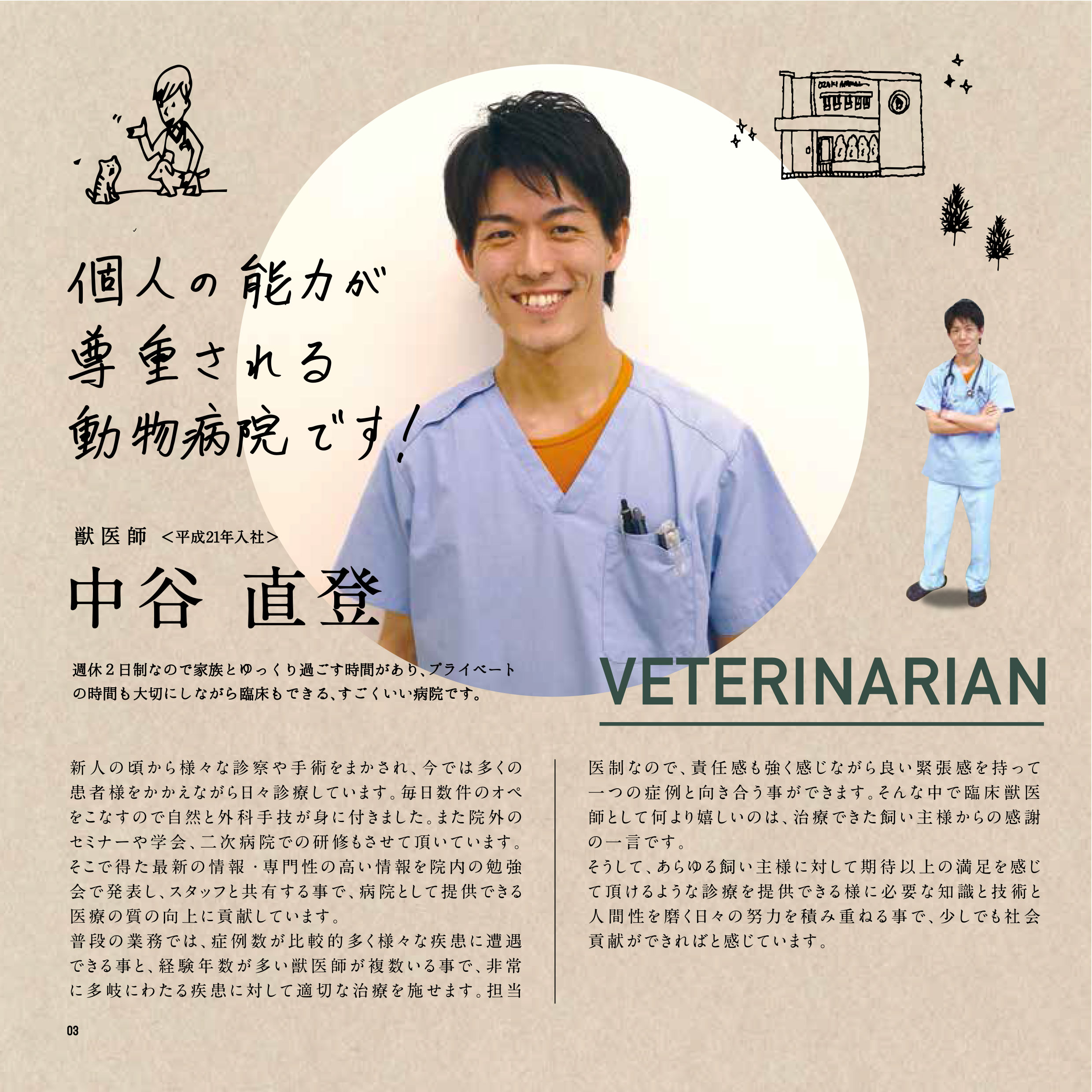 | 勤務形態 | 正社員またはパート ・週休2.5日を実践しております。 ・春の予防シーズン(3・4・5月)を除いて、AMまたはPMの診療に参加せず個人的な勉強や |